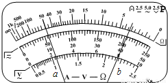 用多用电表进行了几次测量,指针分别处于a、b的位置,如图所示.若多用电表的选择开关处于下面表格中所指的档位,a和b的相应读数是多少?请填在表格中.