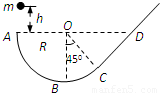 如图,竖直放置的斜面CD的下端与光滑圆弧轨道ABC的C端相切,圆弧半径为R,圆心与A、D在同一水平面上,∠COB=45°,现将一个质量为m的小物块从A点上方距A竖直高度为h=0.5R的位置无初速释放,小物块从A点进入轨道运动至斜面上D点后返回.