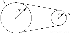 如图所示为一皮带传动装置,右轮半径为r,a点在它的边缘上.左轮半径为2r,b点在它的边缘上.若在传动过程中,皮带不打滑,则a点与b点的向心加速度大小之比为( )