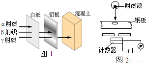 图1是α、β、γ三种射线穿透能力的示意图,图2是工业上利用射线的穿透性来检查金属内部伤痕的示意图,则图2的检查中所利用的射线是( )