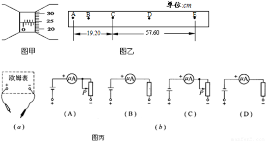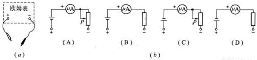 (3)如图丙(a)所示是一个欧姆表的外部构造示意图,其正、负插孔内分别插有红、黑表笔,则虚线内的电路图应是(b)图中的图______.