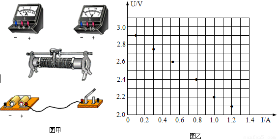 (1)用实线代表导线把图(甲)所示的实物连接成测量电路.(两节干电池串联作为电源,图中有部分线路已连接好)