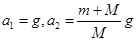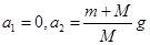 如图所示,轻弹簧上端与一质量为m的木块1相连,下端与另一质量为M的木块2相连,整个系统置于水平放置的光滑木板上,并处于静止状态,现将木板沿水平方向突然抽出,设抽出后的瞬间,木块1、2的加速度大小分别为a1、a2,重力加速度大小为g,则有( )