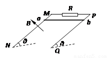 两根足够长的光滑平行直导轨MN、PQ与水平面成θ角放置,两导轨间距为L,M、P两点间接有阻值为R的电阻.一根质量为m的均匀直金属杆ab放在两导轨上,并与导轨垂直.整套装置处于磁感应强度为B的匀强磁场中,磁场方向垂直于导轨平面向上,导轨和金属杆接触良好,它们的电阻不计.现让ab杆由静止开始沿导轨下滑.
