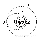 发射地球同步卫星时,先将卫星发射至近地圆形轨道1,然后经点火使其沿椭圆轨道2运行,最后再次点火将卫星送入同步轨道3。轨道1、2相切于A点,轨道2、3相切于B点,如图所示,则当卫星分别在1、2、3轨道上正常运行时,以下说法正确的是( )