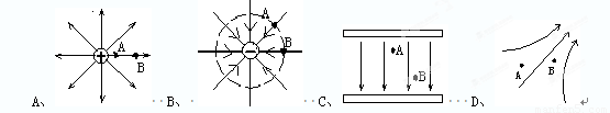 如图所示的各电场中,A、B两点电场强度相等的图是:( )