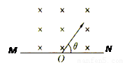 如图所示,边界MN上方存在区域足够大、方向垂直纸面向里的匀强磁场。有两个质量和电荷量均相同的正、负离子,从O点以相同的速率射入磁场中,射入方向与边界成θ=600角。若不计重力。则