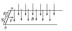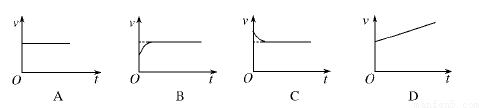 如图所示,两条足够长的平行金属导轨水平放置,导轨的一端接有电阻和开关,导轨光滑且电阻不计,匀强磁场的方向与导轨平面垂直,金属杆ab置于导轨上.当开关S断开时,在杆ab上作用一水平向右的恒力F,使杆ab向右运动进入磁场.一段时间后闭合开关并开始计时,金属杆在运动过程中始终与导轨垂直且接触良好.下列关于金属杆ab的v—t图象不可能的是( )