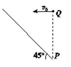 如图所示是倾角为45°的斜坡,在斜坡底端P点正上方某一位置Q处以速度v0水平向左抛出一个小球A,小球恰好能垂直落在斜坡上,运动时间为t1.小球B从同一点Q处自由下落,下落至P点的时间为t2.不计空气阻力,请计算t1∶t2的值