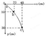 在“研究平抛运动”的实验中,某同学在做该实验时得到了如图所示的轨迹,在图中标出了a、b、c三点 (a点不是抛出点,但与坐标原点O重合)。(取g=10m/s2)则: