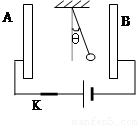 平行板电容器的两极板A、B接于电池两极, 一带正电小球悬挂在电容器内部, 闭合电键K, 电容器充电, 这时悬线与竖直方向的夹角为θ, 如图所示( )