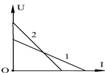 在“测定电源电动势和内阻”的实验中,针对两个不同的电源得出如右图所示的1、2两条图线,则两个电源的动势E1和E2 、内阻r1和r2满足关系)