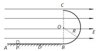 (12分)如图所示,水平绝缘粗糙的轨道AB与处于竖直平面内的半圆形绝缘光滑轨道BC平滑连接,半圆形轨道的半径.在轨道所在空间存在水平向右的匀强电场,电场线与轨道所在的平面平行,电场强度.现有一电荷量,质量的带电体(可视为质点),在水平轨道上的P点处由静止释放,带电体恰好能通过半圆形轨道的最高点C,然后落至水平轨道上的D点.取.试求: