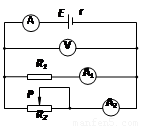在图所示的电路中,电源电动势为E、内电阻为r。将滑动变阻器的滑片P从图示位置向右滑动的过程中,关于各电表示数的变化,下列判断中正确的是( )