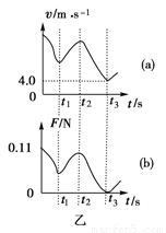(16分)在竖直平面内有一圆形绝缘轨道,半径为R=0.4m,匀强磁场垂直于轨道平面向里,一质量为m=1×10-3kg、带电量为q=+3×10-2C的小球,可在内壁滑动,如图甲所示,开始时,在最低点处给小球一个初速度v0,使小球在竖直平面内逆时针做圆周运动,如图乙(a)是小球在竖直平面内做圆周运动的速率v随时间变化的情况,图乙(b)是小球所受轨道的弹力F随时间变化的情况,结合图象所给数据,(取g=10m/s2) 求: