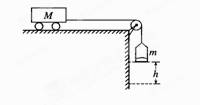 (8分)如图所示,把小车放在光滑的水平桌面上,用轻绳跨过定滑轮使之与盛有沙子的小桶相连,已知小车的质量为M,小桶与沙子的总质量为m,把小车从静止状态释放后,在小桶下落竖直高度为h的过程中,若不计滑轮及空气的阻力,求: