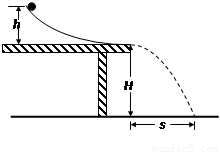某同学利用如图所示的实验装置验证机械能守恒定律.弧形轨道末端水平,离地面的高度为H.将钢球从轨道的不同高度h处静止释放,钢球的落点距轨道末端的水平距离为s.