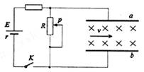 如图所示,电源电动势为E,内阻为r,滑动变阻器电阻为R.开关闭合。两平行金属极板a、b间有垂直纸面向里的匀强磁场,一带正电粒子正好以速度v匀速穿过两板。不计带电粒子的重力,以下说法正确的是( )