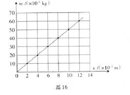 ③图16是该同学根据表中数据作的图,纵轴是砝码的质量,横轴是弹簧长度与_________的差值(填“L0或Lx”)。