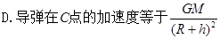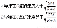 如图所示,从地面上A点发射一枚远程弹道导弹,在引力作用下,沿ACB椭圆轨道飞行击中地面目标B,C为轨道的远地点,距地面高度为h.已知地球半径为R,地球质量为M,引力常量为G.设距地面高度为h的圆轨道上卫星匀速圆周运动周期为T0.下列结论正确的是 ( )
