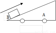 如图所示,带有斜面的小车A静止于光滑水平面上,现B以某一初速度冲上斜面,在冲到斜面最高点的过程中 ( )