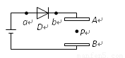 如图所示,D是一只二极管,它的作用是只允许电流从a流向b,不允许电流从b流向a ,平行板电容器AB内部原有电荷P处于静止状态,当两极板A和B的间距稍增大一些的瞬间(两极板仍平行),P的运动情况将是( )