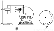 如图甲所示为测量电动机转动角速度的实验装置,半径不大的圆形卡纸固定在电动机转轴上,在电动机的带动下匀速转动。在圆形卡纸的旁边垂直安装一个改装了的电火花计时器。
