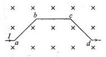 如图,一段导线abcd位于磁感应强度大小为B的匀强磁场中,且与磁场方向(垂直于纸面向里)垂直。线段ab、bc和cd的长度均为L,且。流经导线的电流为I,方向(从a流入,从d流出)如图中箭头所示。导线段abcd所受到的磁场的作用力的合力 ( )