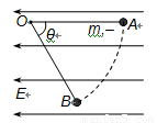 如图所示,在场强大小为E的匀强电场中,一根不可伸长的绝缘细线一端拴一个质量为m电荷量为q的带负电小球,另一端固定在O点。把小球拉到使细线水平的位置A,然后将小球由静止释放,小球沿弧线运动到细线与水平成θ=60°的位置B时速度为零。由此可知小球重力与电场力的关系是Eq:mg=_____________,小球在B点时,细线拉力为T=_____________________。