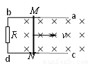 如图所示,两根相距为L的平行直导轨ab、cd,b、d间连有一固定电阻R,导轨电阻可忽略不计.MN为放在ab、cd上的一导体杆,与ab垂直,其电阻也为R.整个装置处于匀强磁场中,磁感应强度的大小为B,方向零直于导轨所在平面(指向图中纸面内).现对杆MN施力使它沿导轨方向以速度V做匀速运动.令U表示MN两端电压的大小,则