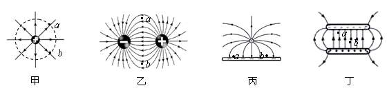 C.丙图:点电荷与带电平板形成的电场中平板上表面与点电荷等距离的a、b两点