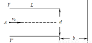 如图所示,真空中水平放置的两个相同极板Y和Y'长为L,相距d,足够大的竖直屏与两板右侧相距b.在两板间加上可调偏转电压U,一束质量为m、带电量为+q的粒子(不计重力)从两板左侧中点A以初速度v0沿水平方向射入电场且能穿出.
