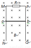 如图所示,足够长的光滑平行金属导轨MN、PQ竖直放置,一匀强磁场垂直穿过导轨平面,导轨的上端M与P间连接阻值为R=0.40Ω的电阻,质量为m=0.01kg、电阻为r=0.30Ω的金属棒ab紧贴在导轨上。现使金属棒ab由静止开始下滑,其下滑距离与时间的关系如下表所示,导轨电阻不计,试求: