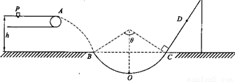 质量为m=1kg的小物块轻轻放在水平匀速运动的传送带上的P点,随传送带运动到A点后水平抛出,小物块恰好无碰撞的沿圆弧切线从B点进入竖直光滑圆孤轨道下滑。B、C为圆弧的两端点,其连线水平。已知圆弧半径R=1.0m圆弧对应圆心角