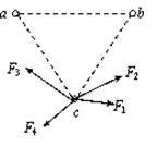 如图所示,三个完全相同的金属小球a、b、c位于等边三角形的三个顶点上。a和c带正电,b带负电,a所带电量的大小比b的小。已知c受到a和b的静电力的合力可用图中四条有向线段中的一条来表示,它应是: ( )