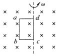 如图所示,单匝矩形闭合导线框abcd全部处于磁感应强度为B的水平匀强磁场中,线框面积为S,电阻为R。线框绕与cd边重合的竖直固定转轴以角速度匀速转动,线框中感应电流的有效值I= 。线框从中性面开始转过的过程中,通过导线横截面的电荷量q= 。