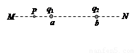 在如图所示的四种电场中,分别标记有a、b两点。其中a、b两点的电势相等,电场强度大小相等、方向也相同的是 ( )