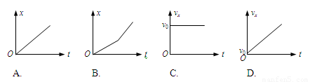 如图所示,粗糙的斜面与光滑的水平面相连接,滑块沿水平面以速度v0运动。设滑块运动到A点的时刻为t=0,距A点的水平距离为x,水平速度为vx ,由于v0不同,从A点到B点的几种可能的运动图象如下列选项所示,其中表示摩擦力做功最大的是( )