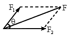 如图所示,两个共点力、的大小一定,夹角θ角0°从逐渐增大到180°的过程中,合力F的大小变化情况为