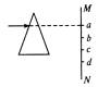 如图所示,一束太阳光通过三棱镜后,在光屏MN上形成的彩色光带落在bd区域内.今将一温度计放在屏上不同位置,其中温度计示数升高最快的区域为 ( )