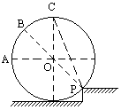 如图,以O为圆心的均匀圆柱体与台阶接触,接触处P是粗糙的,现在要使该圆柱体能以P为轴滚上台阶,最省力的方法是