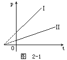 两个密闭的容器中装有同种气体,在同一坐标系中分别做出它们的p-t图象,如图2-1所示.由图象可以看出