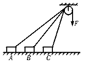 如图所示,用细绳通过光滑的定滑轮用恒定的拉力F拉动光滑水平面上的物体,A、B、C是运动路线上的三点,且AB=BC,则物体在A、B、C三点速度关系为( )
