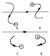 通电导线附近的平面上,有一带电粒子,只在磁场力作用下作曲线运动,其轨迹如图16-64所示,其中正确的是( )