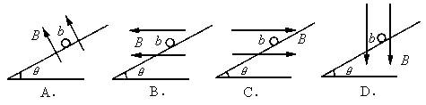 如图(a)所示,质量为m的细杆ab置于倾角为q的导轨上,ab处于磁场中,ab与导轨间动摩擦因数为m,有电流时,ab恰好在导轨上静止。图(b)是它的侧视图,其中表示ab与导轨间摩擦力可能为零的图是( )