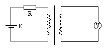 如下图所示,图中直流电源电动势E=1.5V,理想变压器原副线圈匝数之比为n1∶n2=1∶2,则伏特表v的示数_____.