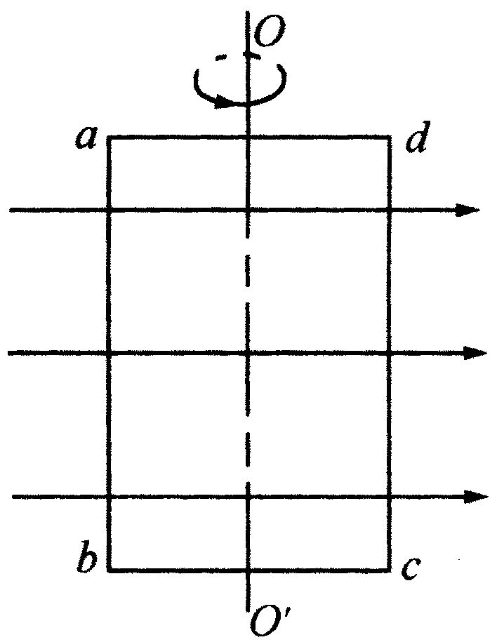 图所示中,在水平向右的匀强磁场里矩形线框abcd绕其对称轴按图所示方向匀速转动,已知匀强磁场磁感强度为0.2T,ab边长为0.4m,a点的线速度大小为0.5m/s,则在图示位置时,线框中感应电动势为________,从图示位置转过90°时,线框中感应电动势为________.