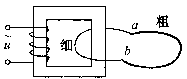 理想变压器初级线圈接交变电压,次级由粗、细圆环如图所示方向连接.已知细环电阻是粗环电阻的2倍,现图示连接处的a,b两点的电势差为1.2V,若把粗细环位置对换,则a,b两点的电势差为________V.