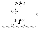 如图所示,向右滑行的小车上固定着一带正电小球,车内还有一个可以自由转动的小磁针b,其偏转情况是________,当小车经过车上方的小磁针a时,小磁针a的N极向________偏转.