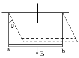 如图所示,铜棒ab长0.1m,质量为6×10-2kg,两端用轻铜线相连,静止在竖直向下的匀强磁场中,磁感强度B=0.5T,当铜棒通有恒定电流时,静止在图示虚线位置,θ=,则铜棒中通过的电流大小为________,方向________.